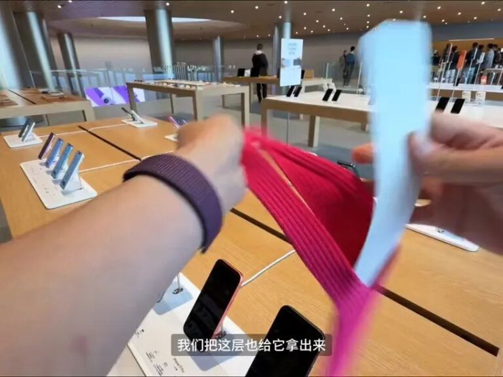 这名博主购买的粉色款,可以看到撕掉外包装后纪源优配,iPhonePocket是套在一张白色衬纸上,还需要取出才能使用。